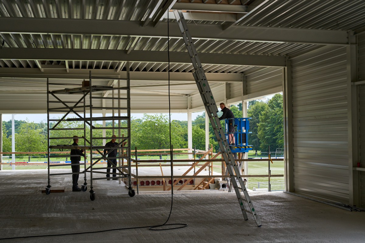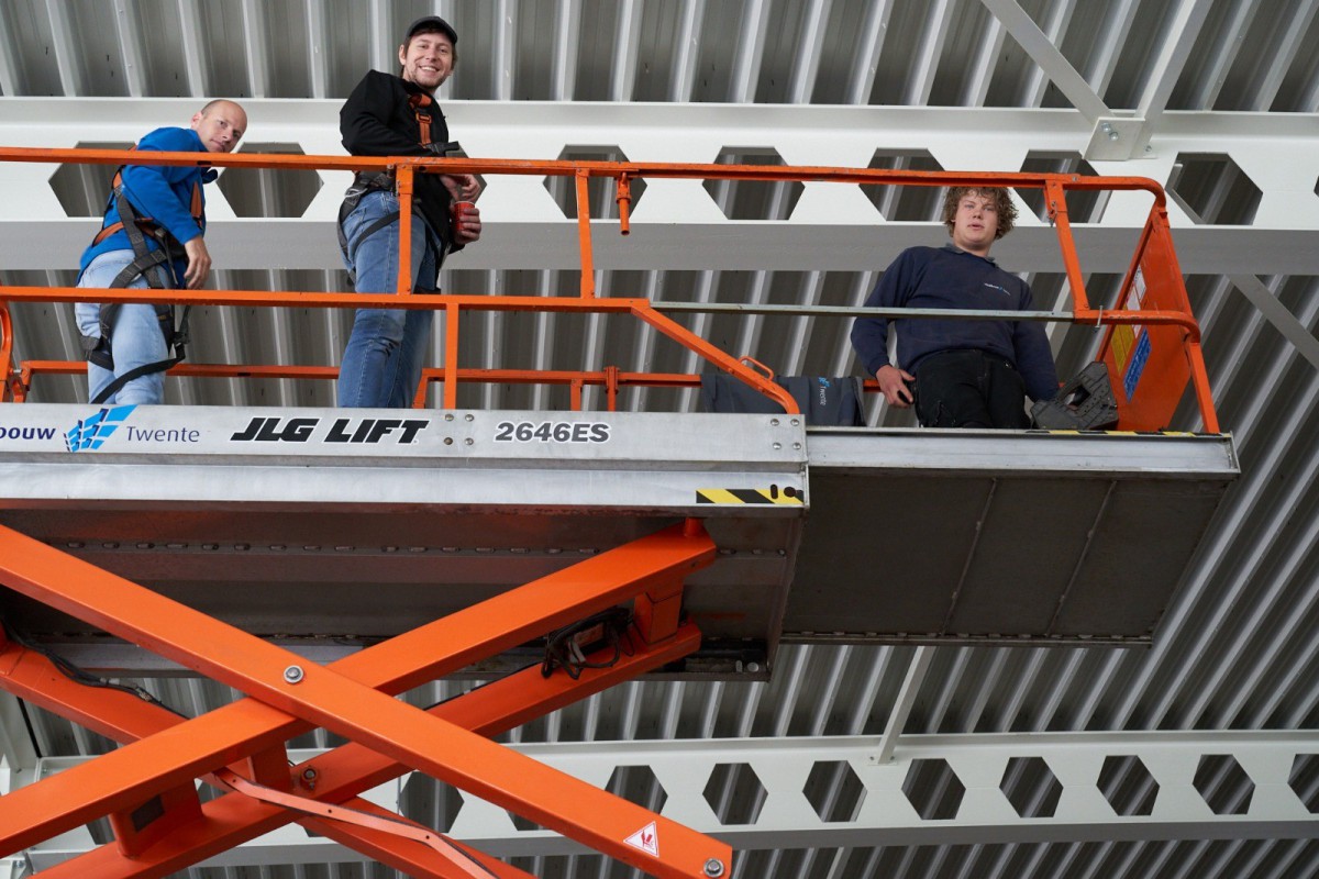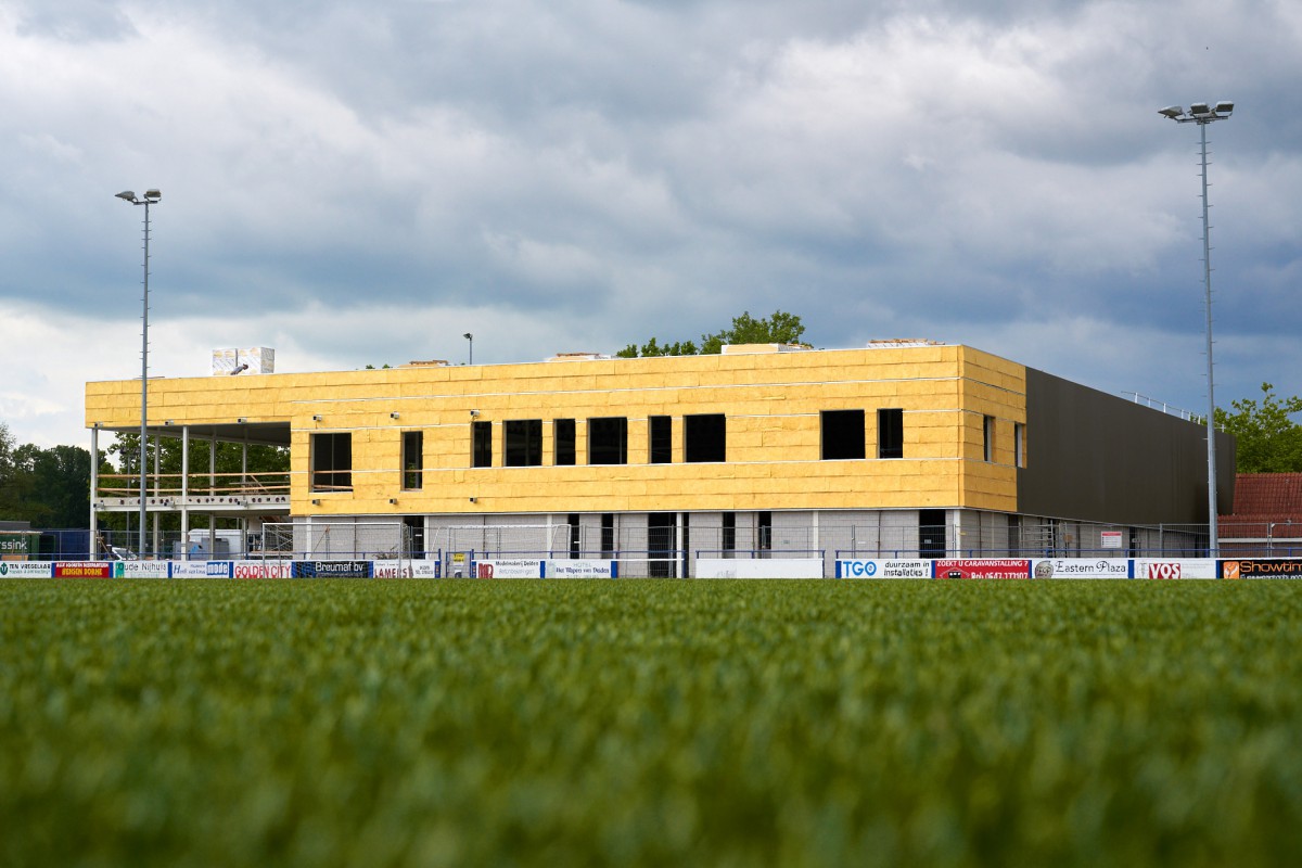 DELDEN – De bouw van Sporthal de Mors – het paradepaardje van het gelijknamige sportpark – gaat de laatste weken in razend tempo. Nadat enkele weken al bericht werd over een dak, wist de Twentse bouwcombinatie in no time wanden op te trekken, isolatiewaardes op te schroeven en zelfs de gevelpanelen al aan te brengen. Binnen strekten enkele tientallen vrijwilligers zich tot hun uiterste om met een duizelingwekkend aantal van 5000 dopjes plafondbouten af te doppen.