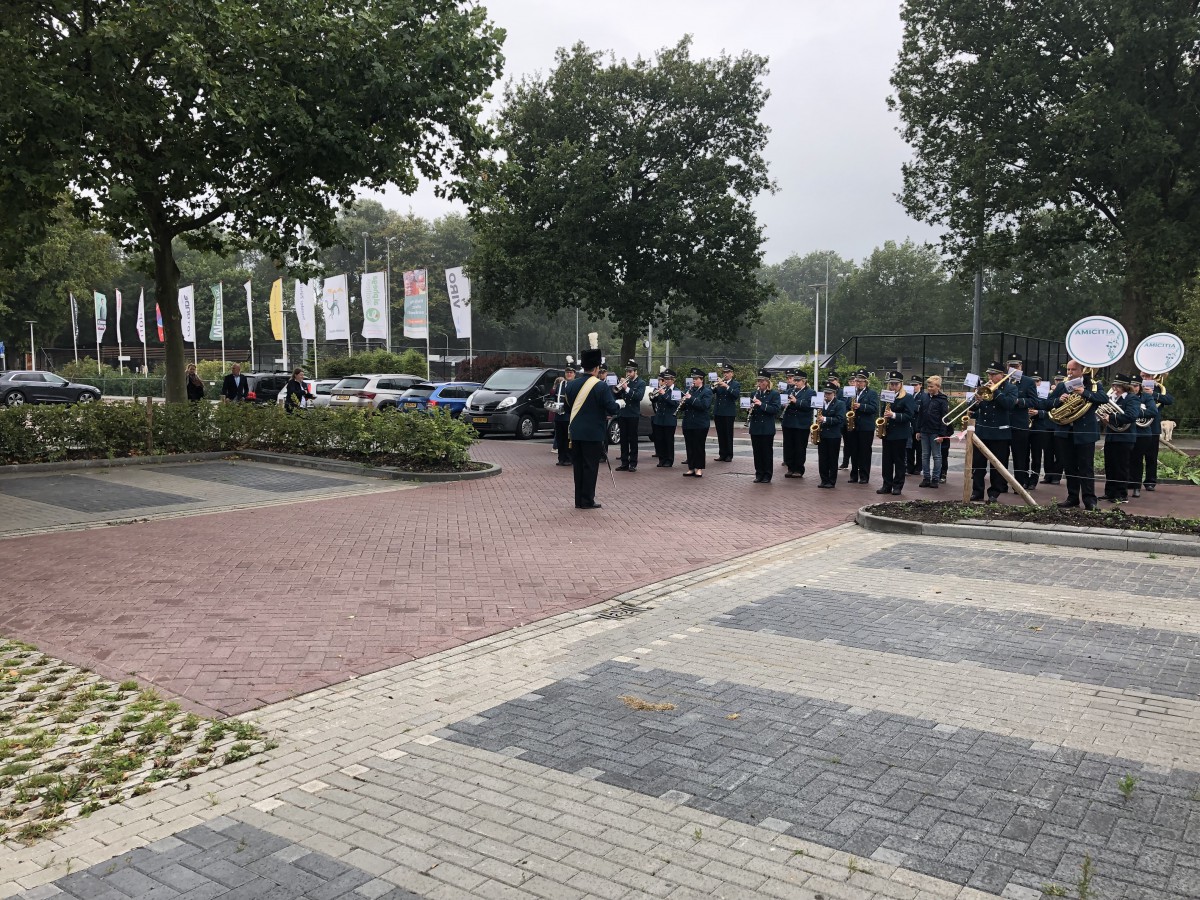 Natuurlijk waren ook wat plichtplegingen onderdeel van de dag. Om 11:30 onthulde wethouder Harry Scholten in de aanwezigheid van zo’n 50 genodigden het kunstwerk Whooosh!, dat in opdracht van de Stichting Beeldende Kunst Hof van Twente op de parkeerplaats van het sportpark geplaatst was. Onder begeleiding van de muzikale noabers van Amicitia werd de mars naar het sportpark zelf ingezet en daar aangekomen openden Huub Oonk (voorzitter SBR) en wethouder Scholten met een kleurrijke ballenregen het park .
